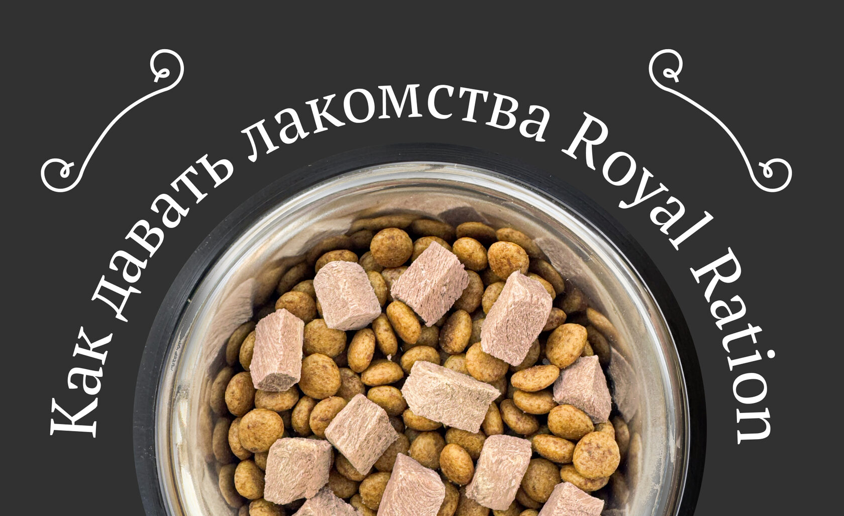 Мои люди иногда посыпают сверху моего обычного корма несколько кубиков Royal Rations—не более 30% от ежедневной порции. Это делает мою еду ароматной и превращает каждый приём пищи в королевское лакомство!